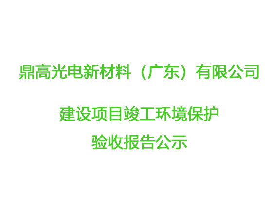 鼎高光電新材料(廣東)有限公司建設(shè)項(xiàng)目竣工環(huán)境保護(hù)驗(yàn)收?qǐng)?bào)告公示