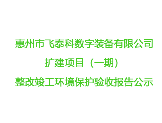惠州市飛泰科數(shù)字裝備有限公司 擴(kuò)建項(xiàng)目(一期)整改竣工環(huán)境保護(hù)驗(yàn)收?qǐng)?bào)告公示