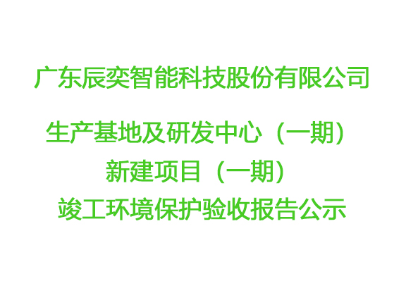廣東辰奕智能科技股份有限公司生產(chǎn)基地及研發(fā)中心(一期)新建項(xiàng)目 (一期)竣工環(huán)境保護(hù)驗(yàn)收?qǐng)?bào)告公示