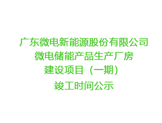 廣東微電新能源股份有限公司微電儲(chǔ)能產(chǎn)品生產(chǎn)廠房建設(shè)項(xiàng)目(一期)竣工時(shí)間公示