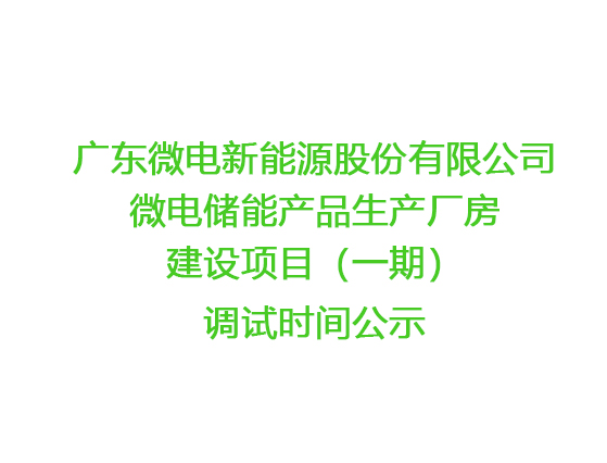廣東微電新能源股份有限公司微電儲(chǔ)能產(chǎn)品生產(chǎn)廠房建設(shè)項(xiàng)目(一期)調(diào)試時(shí)間公示