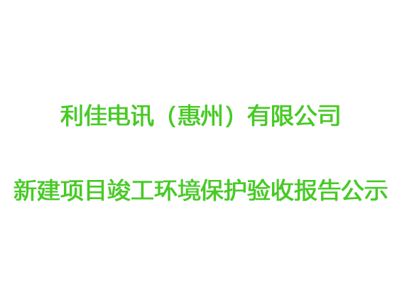 利佳電訊(惠州)有限公司新建項(xiàng)目竣工環(huán)境保護(hù)驗(yàn)收?qǐng)?bào)告公示