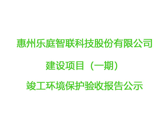 惠州樂(lè)庭智聯(lián)科技股份有限公司 建設(shè)項(xiàng)目(一期)竣工環(huán)境保護(hù)驗(yàn)收?qǐng)?bào)告公示