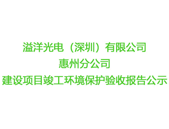 溢洋光電(深圳)有限公司惠州分公司建設(shè)項(xiàng)目竣工環(huán)境保護(hù)驗(yàn)收?qǐng)?bào)告公示