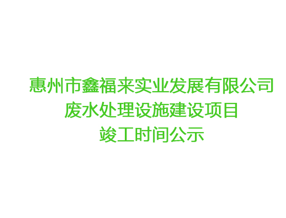 惠州市鑫福來實業(yè)發(fā)展有限公司 廢水處理設(shè)施建設(shè)項目竣工時間公示