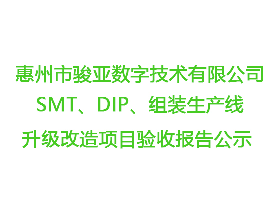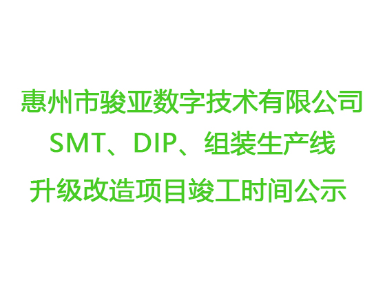 惠州市駿亞數(shù)字技術(shù)有限公司SMT、DIP、組裝生產(chǎn)線升級改造項目竣工時間公示